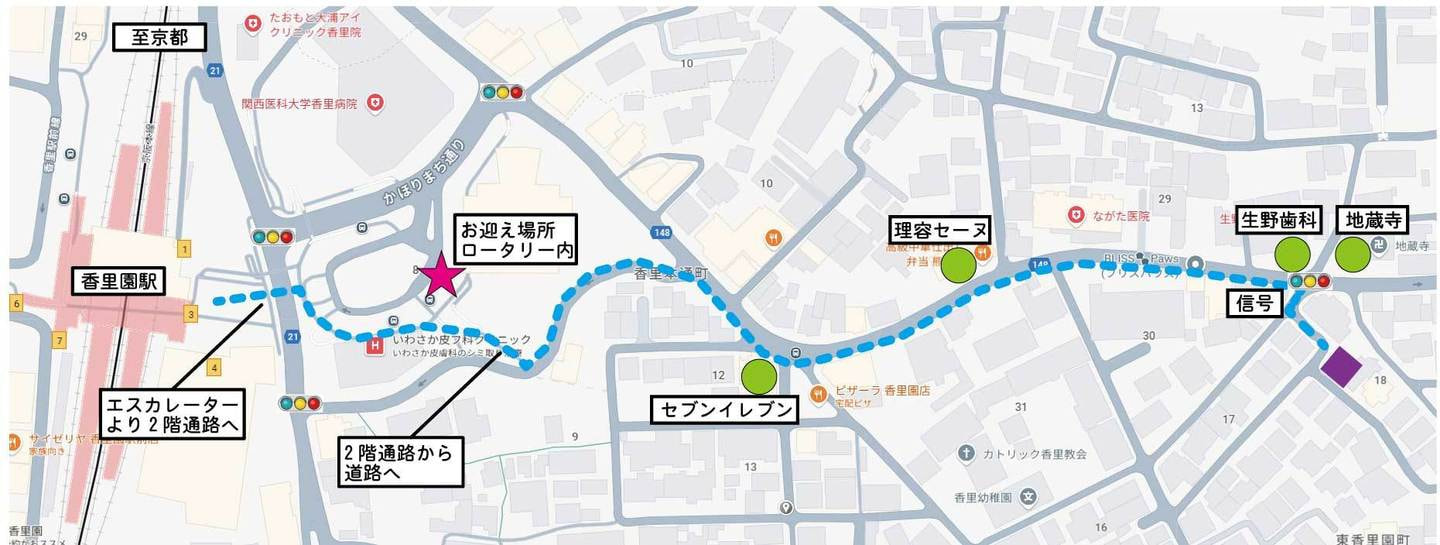 ・京阪電鉄 香里園駅まで送迎可能です。ご予約時にご相談ください。